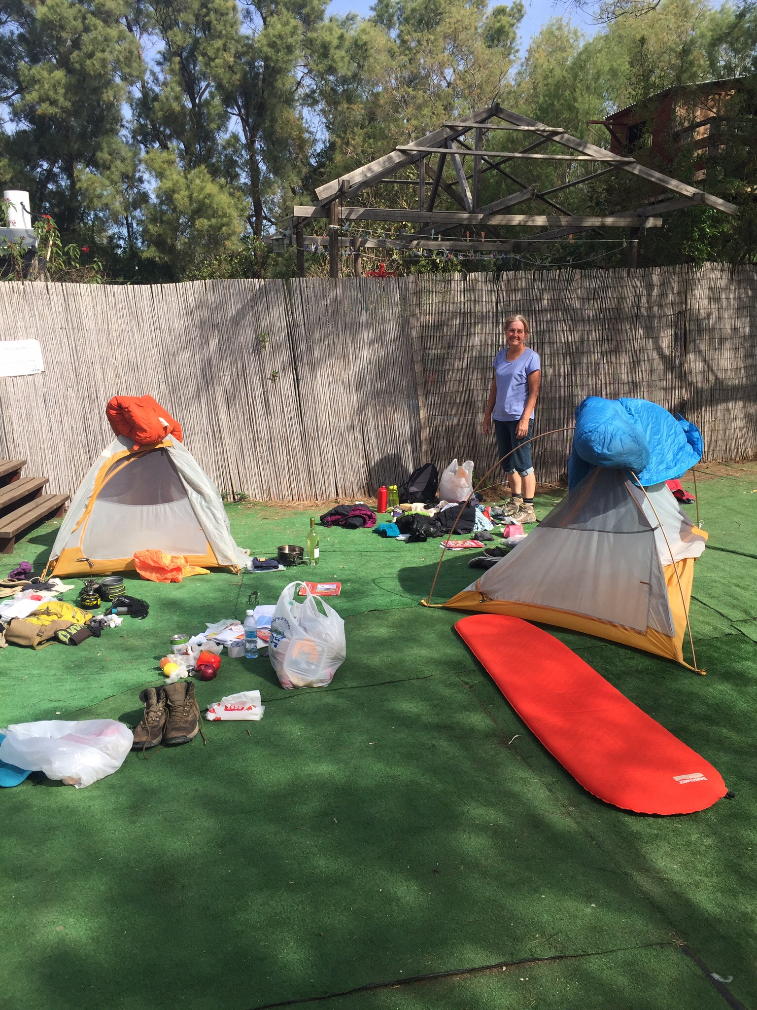 Initially, the purpose of coming to Israel was for Jen and me, together, to hike the entire trail. To hike long and hike hard. Our ageing bodies laughed at us and, sadly, Jen had to go home. When I decided to carry on alone, pacing myself, my ankles continued laughing (or crying as the case may be). I am now ensconced on the beach and I admit the gears are grinding a little as I downshift into the slow lane once again. I tell myself that going slow is OK, even necessary. I get up in the mornings and instead of hoisting my backpack, I immerse myself in the bracing water of miracles and baptisms, eat a breakfast of tea, bread, hummus and salad. I stretch, read, write, and I look for things. There are a smattering of campers on this free beach during Shabbat but I am alone here during the week and you wouldn’t believe what I have found. I now have two hibachi’s (the Israeli version), briquettes, a comfortable chair, a beach mat, wood, a tablecloth, and lots of other various stuff. All I need is a shopping cart! I have also collected a variety of small, flat stones that I am writing on, in Hebrew, a blessing of peace. I will bring these with me when I leave this beach. When I get home I will try drilling a small hole in each of them for a chain to pass through.