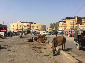 We went on a desert camel safari almost to the Pakistani border and have arrived back ‘home’ to Jaisalmer dusty, stinky, tired, and (in my case) somewhat sore in the nether regions, but happy with the experience. It took me some time to get into the flow of riding a camel. I would almost topple off when she stood up and knelt down but eventually my body relaxed and I was able to move with her. Our camel drivers cooked amazing food over open fires and the cooking lessons were an added bonus. (Sambhu taught me how to make chapati and I taught him how to write his name). Using a mixture of cumin, chilli powder, curry, fresh cilantro, coriander seeds, garlic, lentils, chick pea flour, and a variety of vegetables with rice, we ate well. We (quasi) slept without tents, under a crescent moon in the cold desert night (me paying to sleep rough is a bizarre concept) with a sky full of stars and completely different looking constellations.
