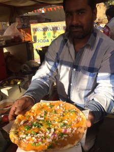 Jaipur (the pink city) isn’t pink anymore and we only stayed a couple of nights before heading to Jaisalmer in the the far western corner of India. Getting there was a 14 hour overnight train ride. We had sleeper seats and our romantic notion of a great sleep lulled by the soothing chug of the engine and the lonesome whistle as we rolled through the night was shattered under the crush of noise. Long shrill whistles, Indian music, food vendors shouting, babies crying, multitudes of people and luggage coming and going all the way through. What on earth were we thinking! While we are revelling in the unparalleled experience that is India, the general cacophony of sound and mayhem are also taking their toll. We have both lost multiple nights of sleep and are sick with sore throats, coughs and colds. But so far, touch wood, no diarrhea. We eat street food which is generally delicious; usually some form of vegetable curry surrounded by a pastry/dough that is deep fried. Our favourite so far is something they have for breakfast – a very thin circle of dough, deep fried and then covered with Dahl sauce (lentils/onion/spice boiled down) and then sprinkled with lemon, onion, parsley, cilantro, tomato, and chillies. Amazing flavours.
