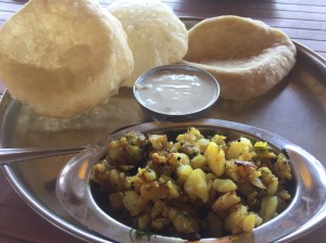 I continue to relish the Indian food but it is so carb, oil, and sugar heavy that I generally eat only one meal a day and supplement it with pineapple, banana, or watermelon. A dish that I love is ‘banana bun’; a kneaded mixture of flour, water, banana, and sugar. It is deep fried and served with a spicy chick pea curry (costs 15 rupees – about 30 cents). Another favourite is curried potato and onion with deep fried bread and a side of yogurt with onion. I’m pretty sure that my sweat now smells like onion and curry.