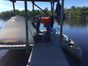 We were savouring our last night in the tent at Lopez’ ground site when we heard voices hailing us. Gord went out to see three men getting out of a leaky, rickety motor boat. “Mand if we stay heer”, they drawled. They were oily polite and odd looking and set off our spidey senses big time. The Everglades attracts bird watchers, outdoor people, fishermen, and adventure types. These guys weren’t any of the those. It was full on dark at this point. We don’t know what their deal was – they said something about heading inland to wait out another coming storm but it didn’t add up. The glades also attract people who want to dump bodies, and people who want to hide. I was hoping they just wanted to hide.