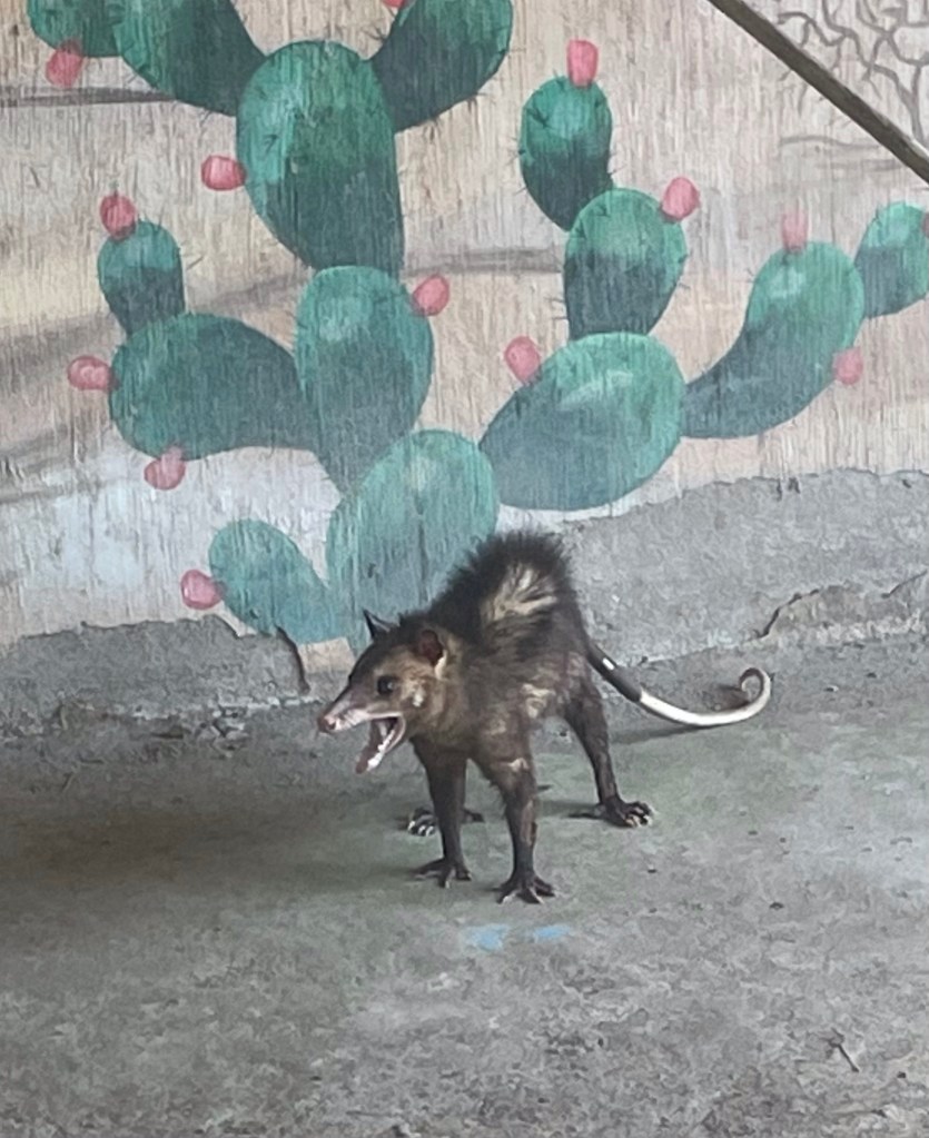 Tasting fresh YuccaOn the way around our tasting tour we came across an opossum in the eavestrough. Poli swung it down bare handed. The dogs went wild, the opossum was ferocious and a hair-raising time was had by all, with no injuries to man or beast…but it was a narrow miss. The picture doesn’t show the snapping and thrashing. The opossum was not impressed!Andreas (Elvis’s girlfriend) made us an awesome breakfast one morning of deep fried cauliflower, spiced rice, black beans and salsa. Illegal (but accepted) trading and traveling across the River between Mexico and Guatemala is a common practice.