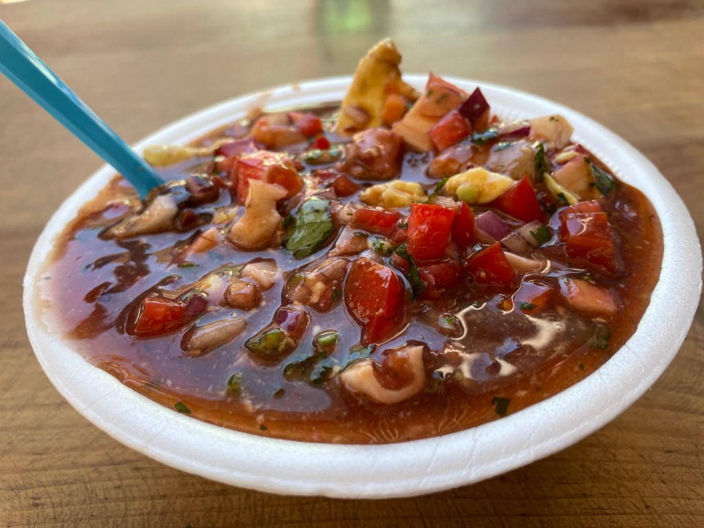 I finally had a chance to try the traditional dish of cervechia – a cold seafood soup in Panajachel. It was a combination of shrimp, crab, calamari, oysters, avacado, lime juice, hot sauce, salsa, with tomato vegetable broth and some brown liquid she squirted in. I will be having it any chance I get and I think when it’s no longer available my taste buds will be yearning for it. I savoured every bite!