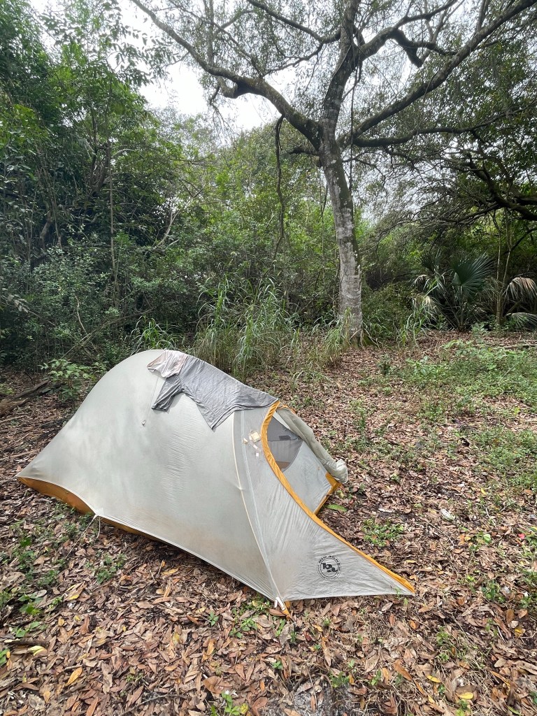 I set up my tent at Glenda and Mark’s place planning to sleep in it, but instead, just kept my gear there. It was a shock when I went to pack up and found fire ants swarming the inside. I couldn’t believe it! I don’t know how they got in! Even after shaking and shaking my clothes, inside and out, I didn’t get them all. I repaired 17 small holes in my tent floor where they had chewed through. My poor old tent is increasingly held together with duck tape, bandades, a wish and a prayer. Good thing I went to church!