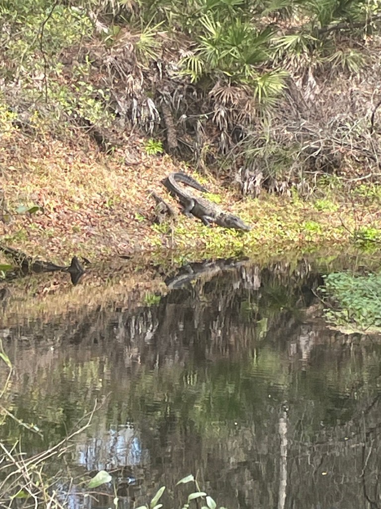 There is nothing quite like sleeping on hard ground, eating trail gruel and immersion into solitude to feel intense gratitude for a comfy bed, delicious food and good friends. I sure appreciated the three nights of generous hospitality visiting Glenda and Mark in their lovely motor home on a horse ranch close to Ocala. I went to church with them and afterwards we enjoyed a variety southern dishes at the church lunch. Anna Marie (a super fun lady we met there) invited us to Rainbow Springs the following day where sat by the water and picnicked on brisket sandwiches. It was a beautiful day! So many thanks to Glenda and Mark!